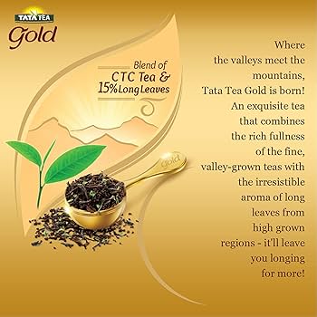 Product Highlights: - Unique Blend of Assam CTC & Long Leaves: Offers perfect strength and aroma. - Rich, Smooth Taste: Ideal for a luxurious tea-drinking experience. - Aroma that Awakens Your Senses: Indulge in a fragrant tea moment. - Perfect for Everyday Enjoyment: Suitable for daily tea lovers. - 100% Natural Ingredients: No added flavours, only natural tea leaves. Key Features: - Premium Blend: 15% gently rolled long leaves and 85% Assam CTC tea. - Rich & Smooth Taste: Ideal for a luxurious tea experience. - Aromatic Experience: Aroma that awakens your senses. - Refined Tea Moment: Perfect for a premium tea-drinking experience. Details From Manufacturer: Type: Blend of Assam CTC and long leaves Weight: 250 gms Packaging: Hygienic, moisture-proof packaging Shelf Life: 12 months How to Use: Boil water in a pot. Add Tata Tea Gold blend and boil for 2-5 minutes. Add milk and sugar to taste. Strain and serve hot for a refined tea experience. Additional Information: Storage: Store in a cool, dry place away from direct sunlight. Packaging: Packed under hygienic conditions. Disclaimer: Product image is for representation purposes; packaging may vary. Pack Contents: Tata Tea Gold Leaf Tea : 1 Unit Benefits: Balanced Strength & Flavor: Offers a unique mix of strength and flavor. Luxurious Experience: Perfect for creating a premium tea moment. Enhanced Tea Experience: Rich aroma elevates every sip. Frequently Asked Questions: Q: What makes Tata Tea Gold different from regular tea? A: The blend of CTC with long leaves delivers a unique combination of strength and aroma. Q: Can Tata Tea Gold be used for black tea? A: Yes, the blend is perfect for black tea preparation. Q: Is Tata Tea Gold suitable for daily use? A: Yes, it’s crafted for premium quality, ideal for everyday tea moments. Q: What is the shelf life of Tata Tea Gold? A: The shelf life is 12 months. Q: Does Tata Tea Gold have added flavors? A: No, it’s made with 100% natural tea leaves. Instructions: Store in an airtight container after opening to retain freshness. About the Brand: Tata Tea Gold is crafted where the valley meets the mountains, combining the rich fullness of fine valley-grown Assam teas with the irresistible aroma of specially selected long leaves from the highlands. Expertly blended by Tata Tea’s master craftsmen, this premium tea is created for discerning consumers who desire a luxurious tea experience. Every cup offers an exquisite taste and aroma, leaving you longing for more.